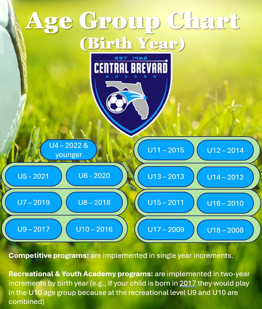 The competitive soccer programs at Central Brevard Soccer are for boys and girls in the U9 to U18 age groups who desire to play at a highly competitive level of play. Our teams compete in regional leagues and tournaments and teams are formed by tryouts.